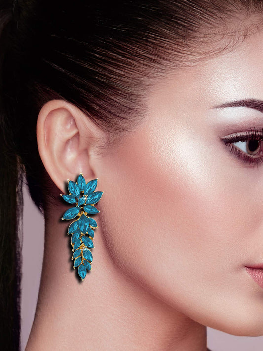 Elegant A5 Grade Sparkling Crystal Classic Leafy Design Crystal Drop Earrings For Women And Girls (Sky Blue)