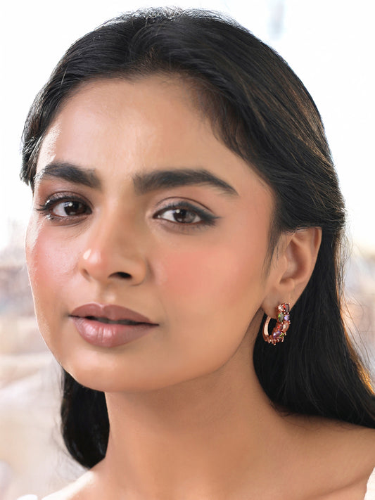 Clip On Earrings for Women Multicolor Swiss Zircon Rosegold Plated Crystal Clip-On Earrings for Women and Girls.
