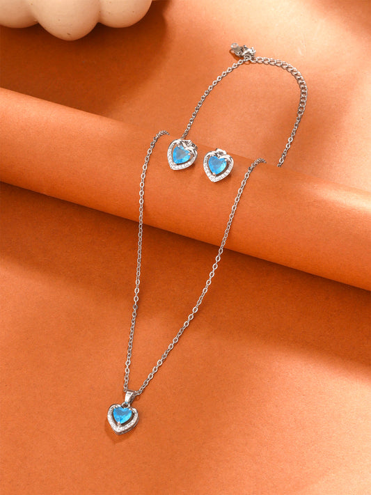 Pendant Set for Women & Girls Blue Crystal Pendant Set for Women | Pendant With Earrings Set | Birthday Anniversary Gift for Wife Birthday Gift for Girls (Heart Crystal Pendant Set)