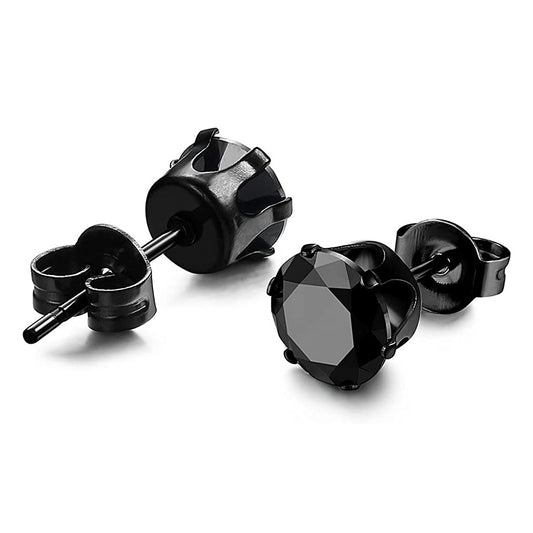 Black Crystal Sides Craft 316L Stainless Steel Earrings for Men and Women