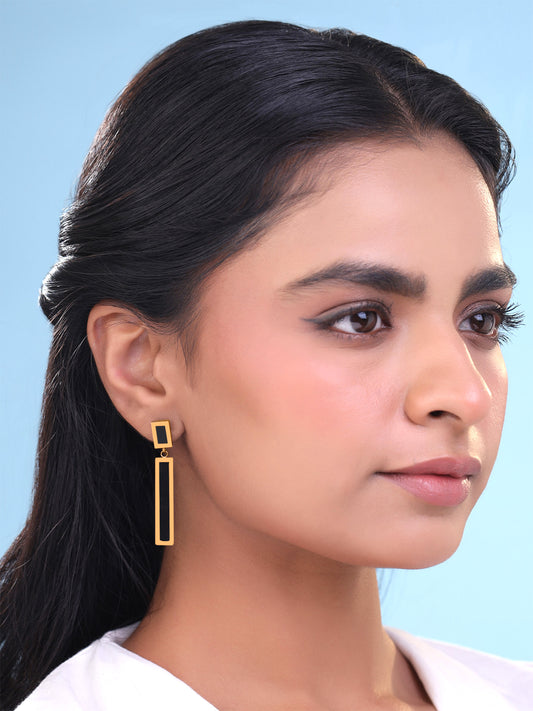 Long Drop Earrings for Women Girls | Fashion Golden Women Earrings | Gold Plated Black Drop Long Earrings for Women | Birthday Gift for Girls Anniversary Gift for Wife