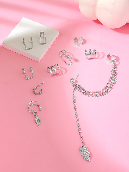 Earrings for Women and Girls Fashion Silver Ear Cuff Set | Silver Tone Ear Cuff | Stainless Steel Cartilage Ear Clips Set | Birthday Gift for Girls and Women Anniversary Gift for Wife