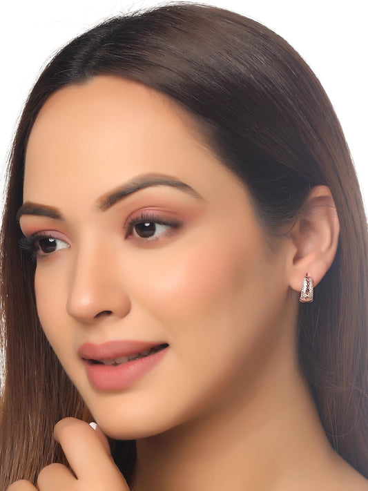 Kairangi Earrings for Women and Girls Rose Gold Crystal Hoops | Rose Gold Plated Clip On Earrings Crystal Hoop Earrings for Women | Birthday Gift for girls and women Anniversary Gift for Wife