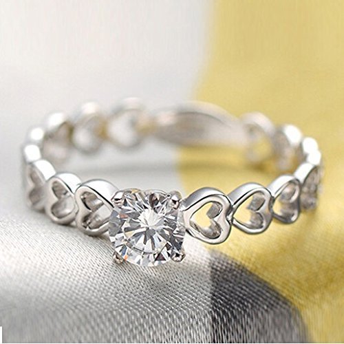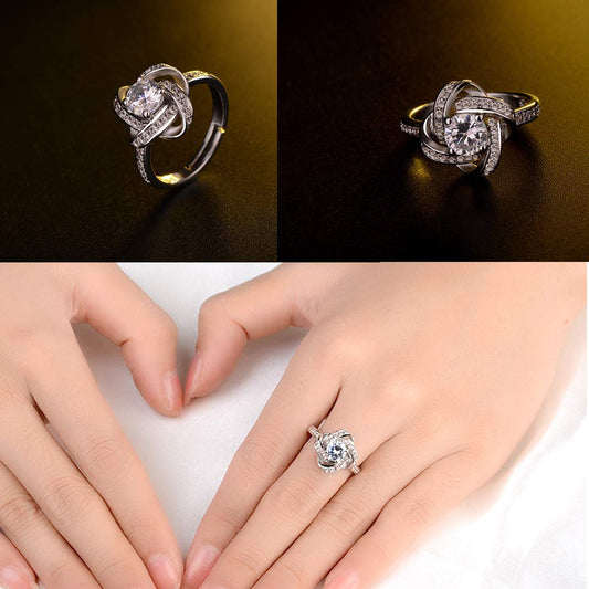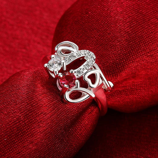 Heart Ring Dazzling Engagement Proposal Austrian Crystal 925 Silver Plated Designed Adjustable Ring for Girls