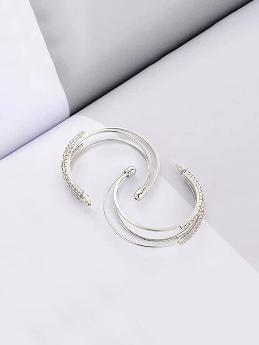 Earrings for Women and Girls Hoop Earrings for Girls | Silver Toned Crystal Studded Hoop Earrings | Birthday Gift for girls and women Anniversary Gift for Wife