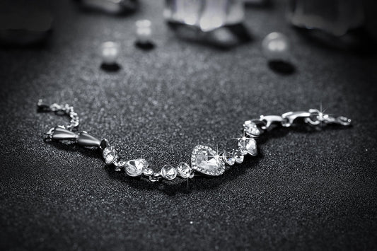 Women Crystal Bracelets | Heart Shaped Silver Toned Bracelets For Women | White CZ Crystals Bracelet For Woman | Birthday Gift for Girls & Women Anniversary Gift for Wife