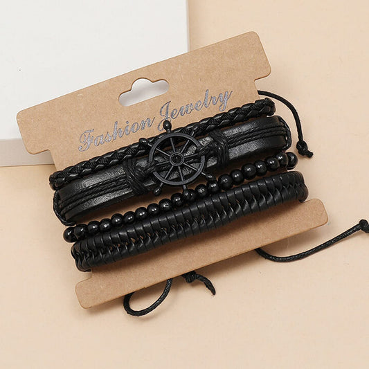 Bracelets for Men and Boys Leather Bracelet Set for Men Multi Layered Leather Wrap Wrist Bracelet | Birthday Gift for Men & Boys Anniversary Gift for Husband (Design 14)