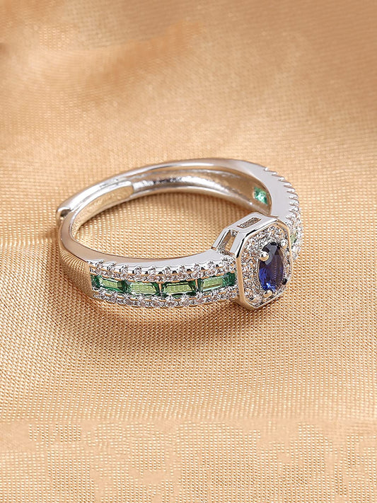 Rings for Women and Girls Silver Ring | Adjustable Blue Crystal Rings Silver Toned Finger Ring for Women | Birthday Gifts For Women Valentine Gift for Girls