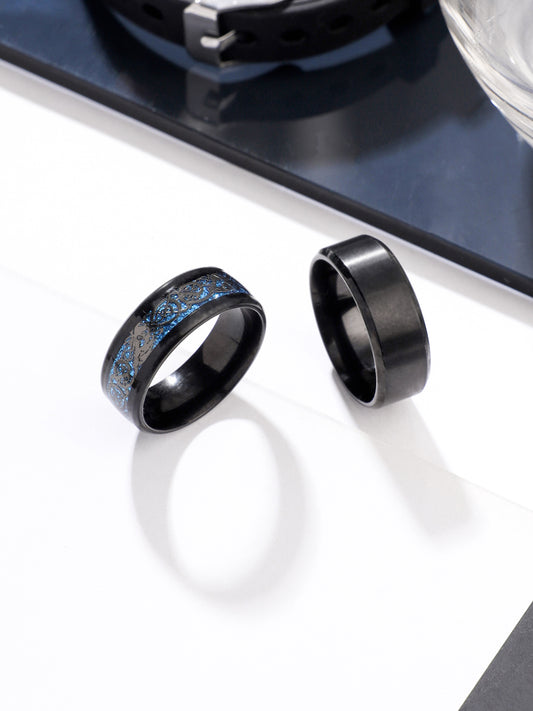Combo Black & Blue Rings For Men | Pack of 2 Stainless Steel Men Rings | Dragon Celtic Design Black Silver Blue Finger Rings for Boys | Ideal Gift For Men and Boys