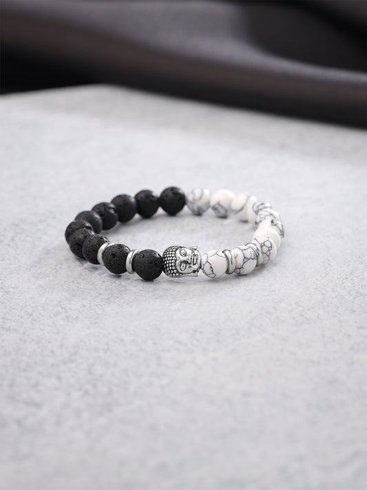 Bracelets for Men and Boys White Black Beads Bracelet for Men | D'Vine Buddha Beads Bracelet Stretchable Mens Bracelet | Birthday Gift for Men and Boys Anniversary Gift for Husband