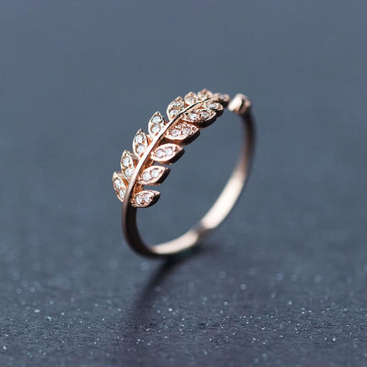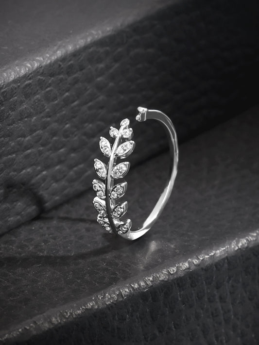 Crystal Rings For Women | Adjustable Silver Ring Cubic Zircon Crystal Ring | Leafy Shaped Rhodium Plated Finger Ring for Girls | Birthday Gift For Girls & Women Anniversary Gift for Wife