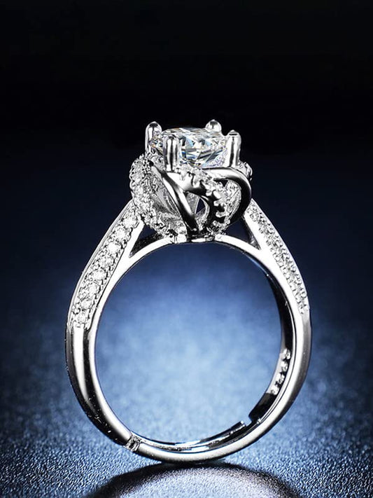 Elegant Crsytal Adjustable Silver Ring for Women Valentine Gift for Girls