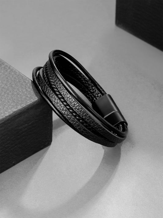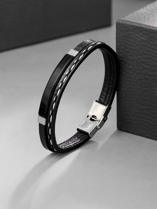 Bracelets for Men and Boys | Black Leather Bracelet for Men | Stainless Steel Type Leather Bracelets for Men | Accessories Jewellery for Men | Birthday Gift for Men and Boys Anniversary Gift for Husband
