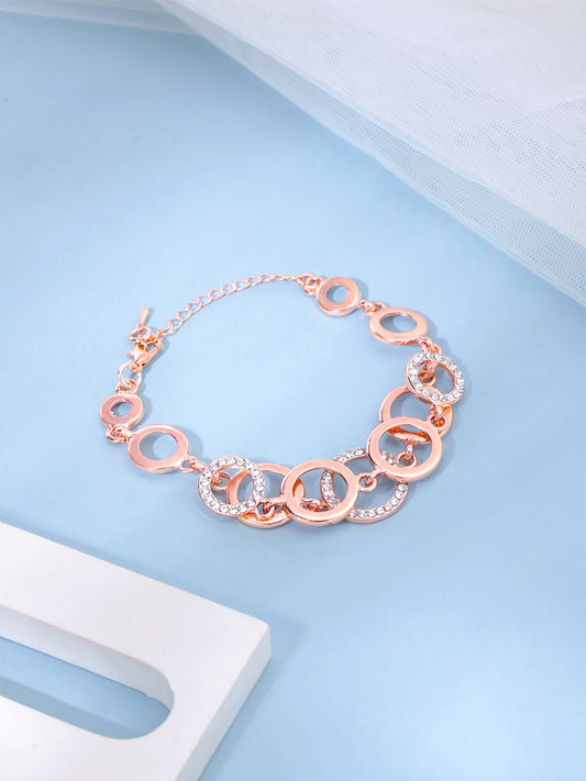 Valentine Gift for Girls Bracelet for Women and Girls | Fashion Rose Gold Crystal Studded Bracelets for Women and Girls | Rose Gold Plated Coin Shaped Bracelet | Birthday Gifts For Women
