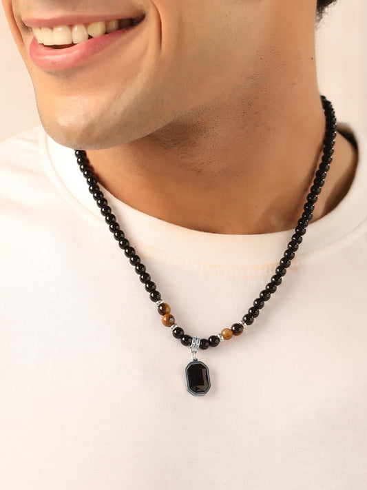 Beads Necklace for Men Fashion Black Pendants For Men | Tiger Eye Stone Beads Necklace Pendant Necklace Chain for Men | Urban Edge | Accessories for Men | Birthday Gift for Men & Boys