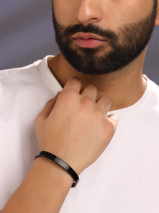 Bracelets for Men and Boys Fashion Black Kada Bracelet for Men | High Polished Stainless Steel Kada for Men | Birthday Gift for Men and Boys Anniversary Gift for Husband