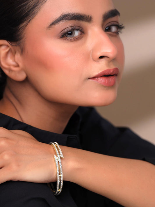 Bangle Bracelet: Golden Cubic Zirconia for Women | 2.6 in Size | Elegant Design | Gift for Her
