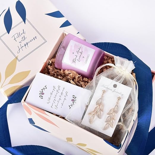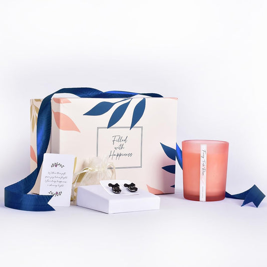 Gift Set for Women|Crystal Drop Earring and Gift Box pack of 2 with Candle(Black Amber Lavender,60g) |Birthday Gift,Anniversary Gift,Valentine Gift,Secret Santa Gifts