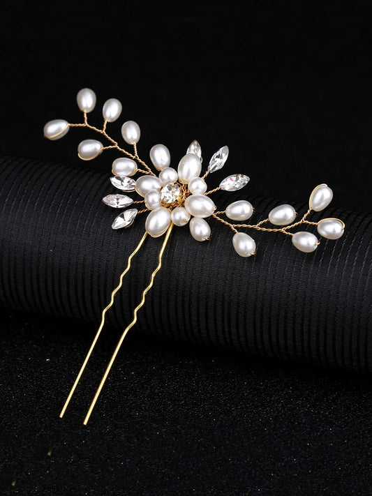 Comb Pin for Women Hair Accessories for Women Floral Comb Clips for Hair for Women White Pearl Hair Pin Bridal Hair Accessories for Wedding Side Pin / Comb Pin / Jooda Pin Accessories for Women