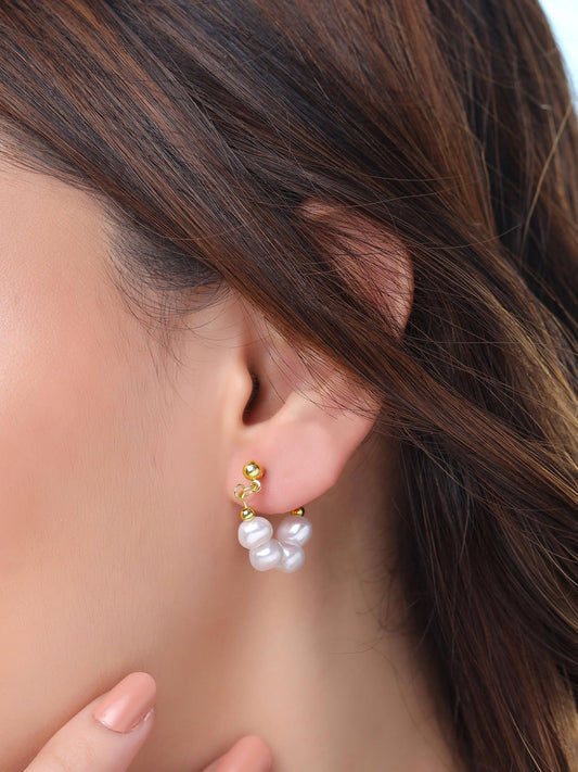 Pearl Drop Earrings For Women | Fashion Women Earrings | Gold Plated White Pearls Hoop Earrings For Girls | Birthday Gift for Girls Anniversary Gift for Women