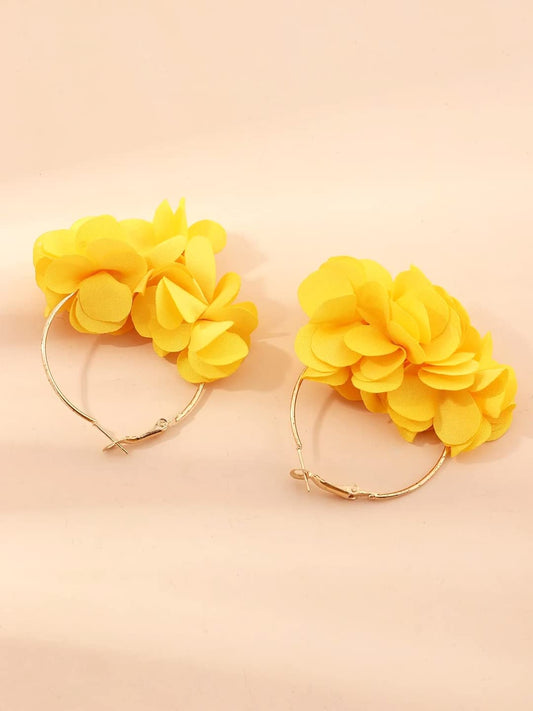 Hoop Earrings for Women Fashion Yellow Hoops Earrings | Chiffon Silk Handmade Floral Layered Petal Hoop Earrings for Girls | Birthday Gift for Girls & Women Anniversary Gift for Wife