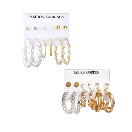 Set of 6 Gold Plated Pearl Contemporary Hoop and Stud Earrings For Women And Girls (Pack Of 10)