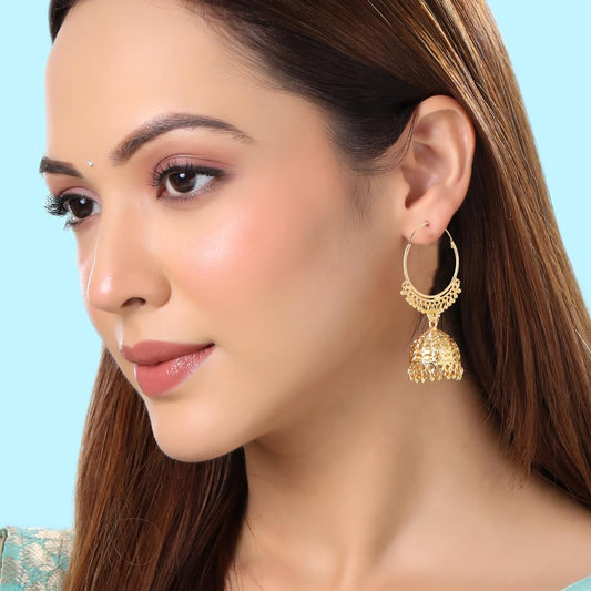 Traditional Golden Hoop Jhumka Earrings for Women and Girls | One Gram Gold Plated Combo Of 2 Pairs Big Jhumka Jhumki Earrings | Eternal Elegance | Birthday Gift for Girls & Women