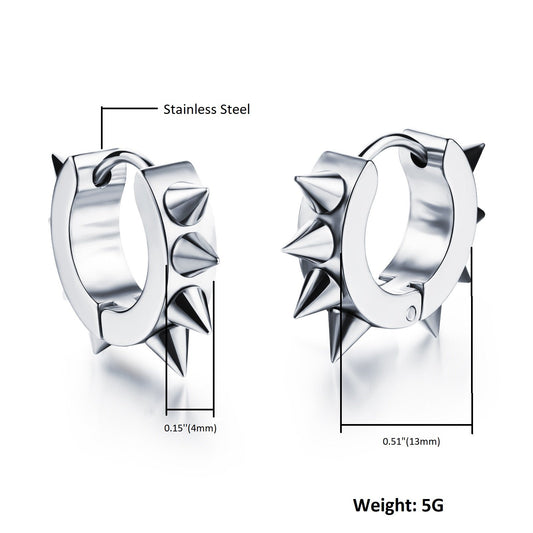 Hoop Earrings for Men Stainless Steel Silver Spike Hoop Earrings for Men and Boys
