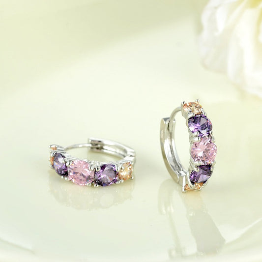 Earrings for Women Fashion Multicolor Crystal Hoops | Silver Toned Hoop Earrings for Girls | Birthday Gift for Girls & Women Anniversary Gift for Wife