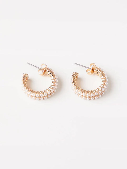 Earrings for Women and Girls Fashion White Pearl Hoops Set | Gold Plated Combo of 12 Pairs Stud Hoop Earring Set | Birthday Gift for girls and women Anniversary Gift for Wife