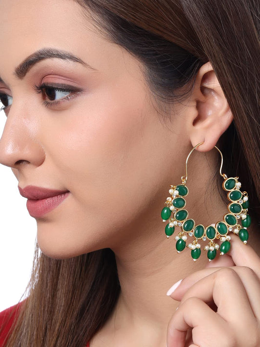 Earrings For Women Gold Toned Green Stone Studded Graceful Hoop Earrings For Women and Girls