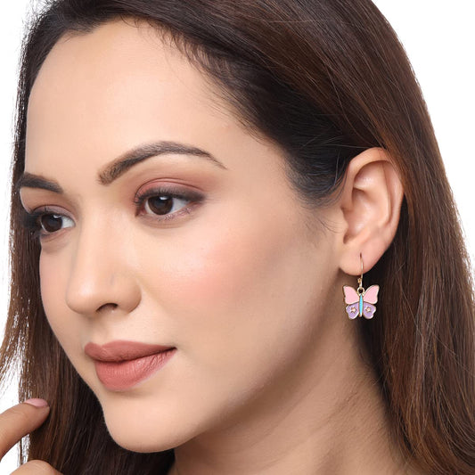 Earrings for Women and Girls Rosegold Crystal Hoops | Rose Gold Plated Butterfly Shaped Hoop Earrings | Birthday Gift for girls and women Anniversary Gift for Wife