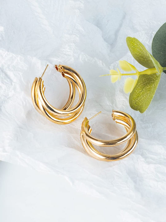 Earrings for Women and Girls Golden Hoops Earrings | Gold Plated Layered Hoop Earrings for Women | Birthday Gift for girls and women Anniversary Gift for Wife