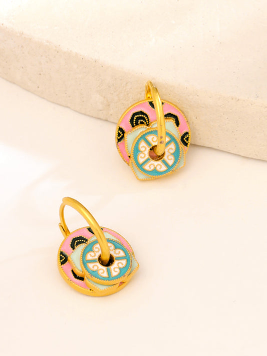Hoop Earrings: Gold Plated Multicolor Enamel for Girls | One Size