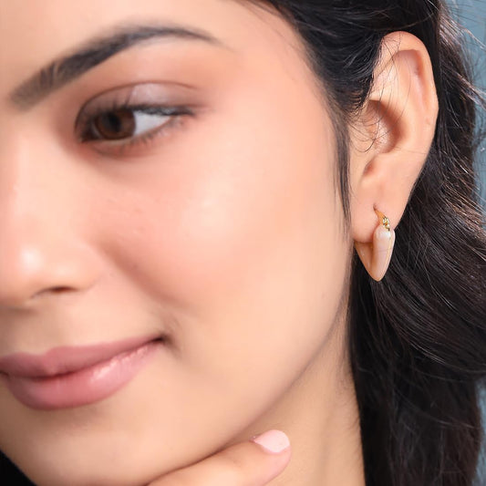 Earrings for Women and Girls Hoop Earrings for Girls | Gold Toned White Pearl Studded Hoop Earrings | Birthday Gift for girls and women Anniversary Gift for Wife
