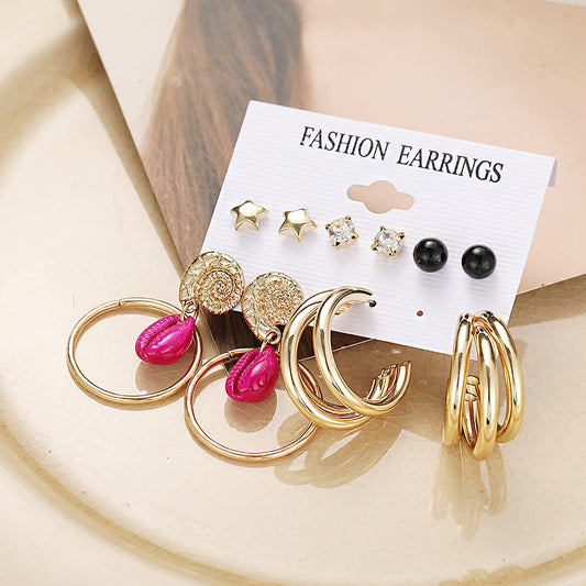 Combo: 6 Pairs of Multicolor Earrings - Hoop, Drop & Stud | Gift-Worthy | Lightweight | Traditional