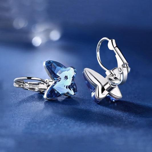 Earrings for Women and Girls | 2 Pair Combo of Silver Crystal Hoop and Blue Butterfly Designed Clipon Earrings for Women | Birthday Gift for Girls and Women Anniversary Gift for Wife