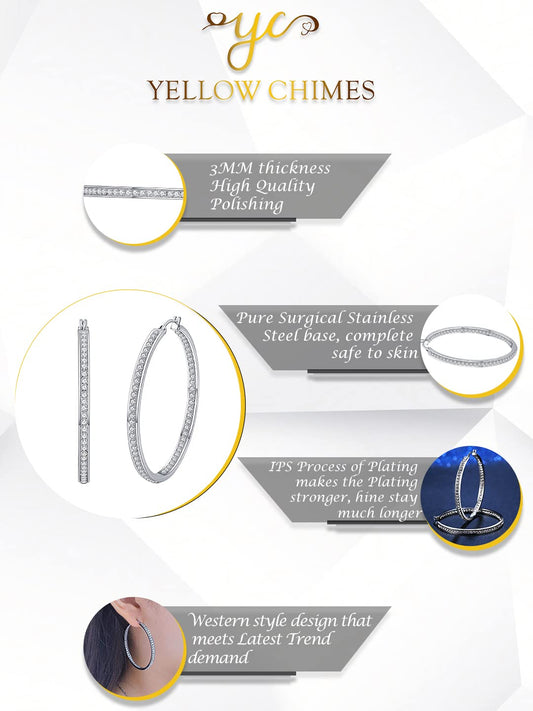 Earrings for Women Fashion White Crystal Hoops | Rhodium Plated Silver Big Hoops Earrings for Girls | Birthday Gift for Girls & Women Anniversary Gift for Wife