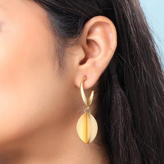 Earrings for Women and Girls Fashion Golden Hoop Earrings for women | Gold Plated Dual Layered Disc Drop Hoop Earrings | Birthday Gift for Girls and Women Anniversary Gift for Wife