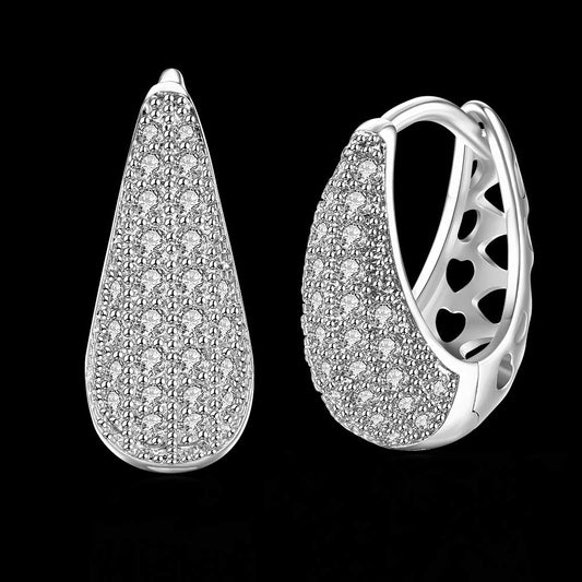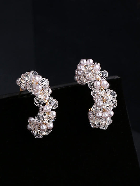 Earrings for Women Fashion Silver Crystal Hoops | Rhodium Plated Clip On Hoop Earrings for Girls | Birthday Gift for Girls & Women Anniversary Gift for Wife