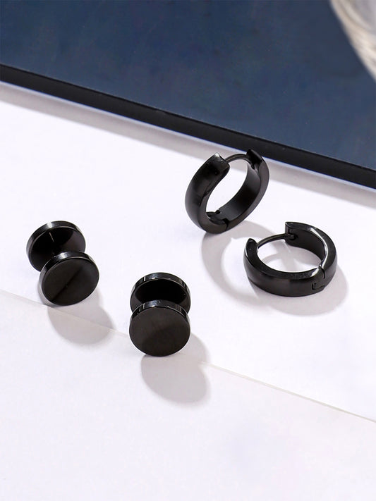 Combo: Silver & Black Stainless Steel Hoop Earrings for Men | Fashion Accessories