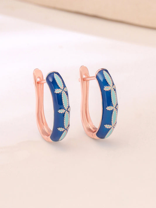Gold Plated Enamel Hoop Earrings for Women | 2.1 CM | Blue | Multicolor