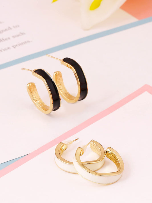 Earrings for Women and Girls Hoop Earrings for Girls| Gold Toned Combo of 2 Pairs White & Black Hoop Earrings | Birthday Gift for girls and women Anniversary Gift for Wife