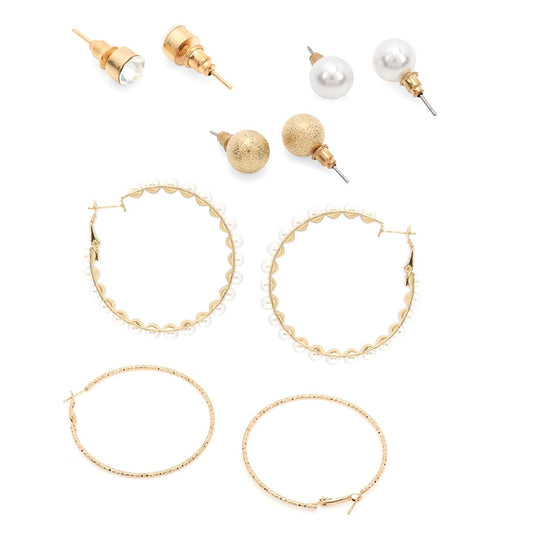 Combo Earrings For Women Set Of 6 Pairs Earring Gold Plated Stud and Pearl Hoop Earrings For Women and Girls