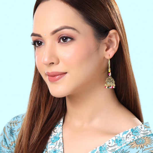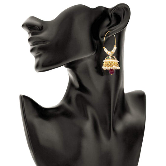 Exclusive Traditional Meenkari Moti Work Hoops Jhumki Earrings for Women and Girls