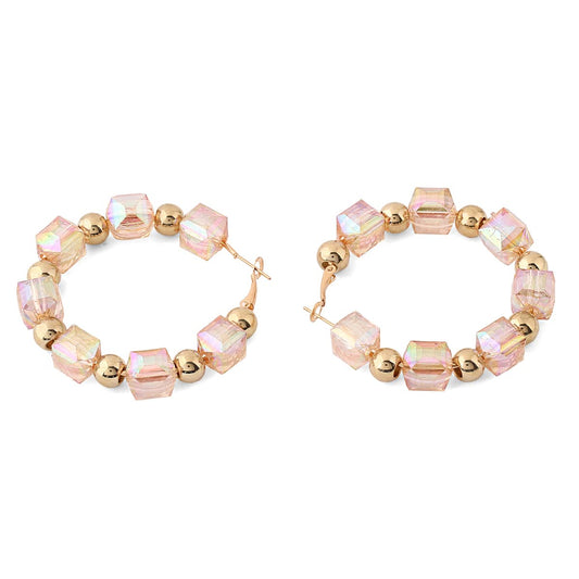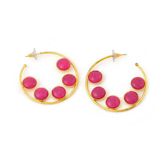Earrings For Women Gold Tone Pink Crystal Studded Hoop For Women and Girls