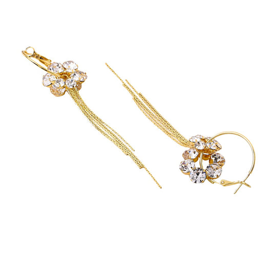 Earrings For Women Gold Tone Hoop With Attachable Flower Chain Fringes Dangler Earrings For Women and Girls