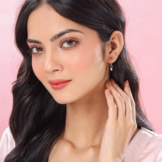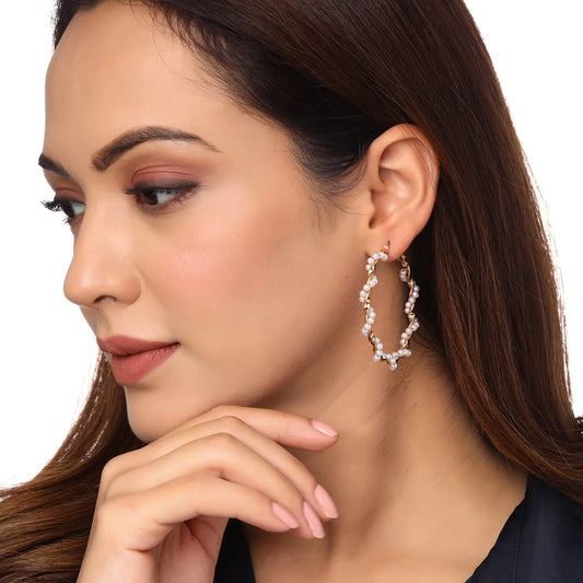 Earrings for Women Gold Toned White Pearl Drop Hoop Earrings for Women and Girls