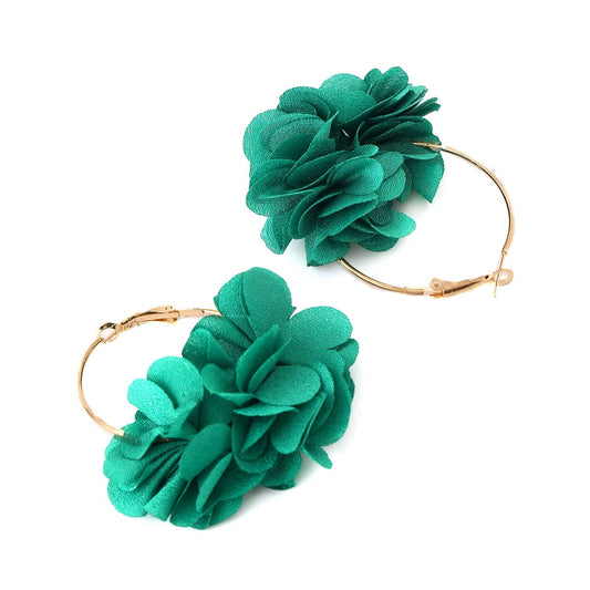 Earrings For Women Green Color Boho Dangle Lace Cloth Mesh Yarn Chiffon Silk Handmade Flower Layered Petal Circel Hoop Jewelry Earrings for Women and Girls