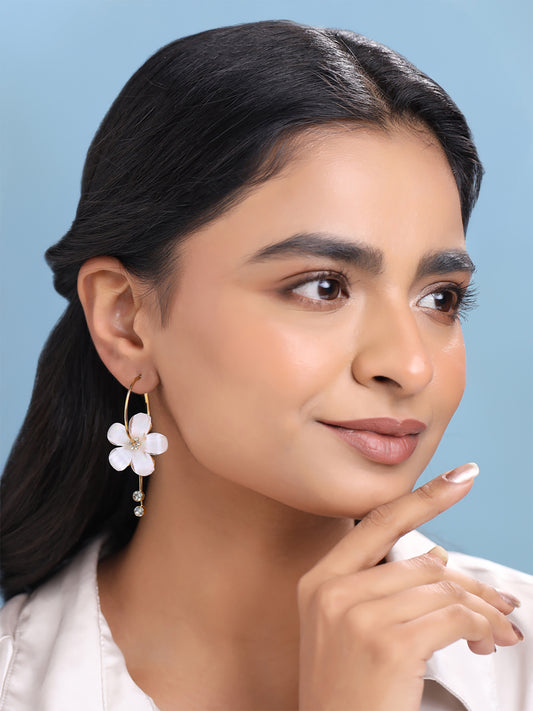 Hoop Earrings for Women Fashion Floral Shaped Hoops Earrings | White Big Hoops Bali Earrings for Girls | Birthday Gift for Girls & Women Anniversary Gift for Wife